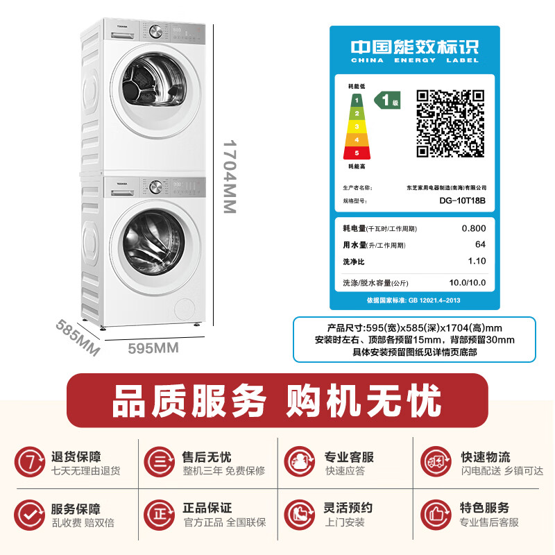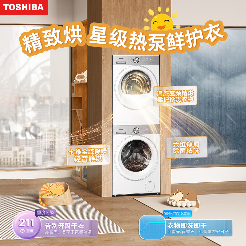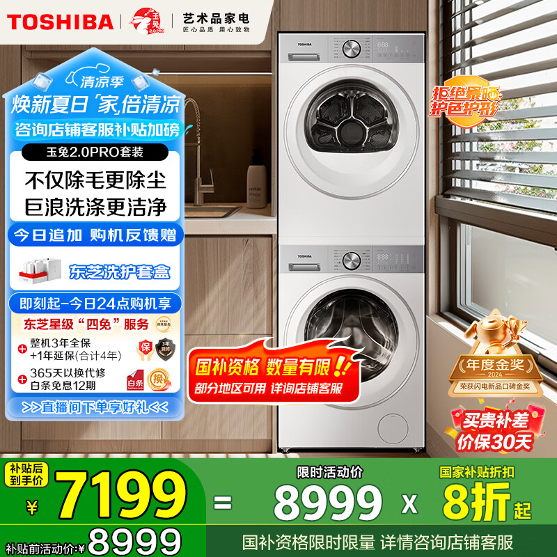 东芝(TOSHIBA)玉兔2.0pro洗烘套装【DG-10T18B+T18B】10KG滚筒洗衣机+变频热泵烘干机 以旧换新 家电国家补贴20%到手价格9499元。