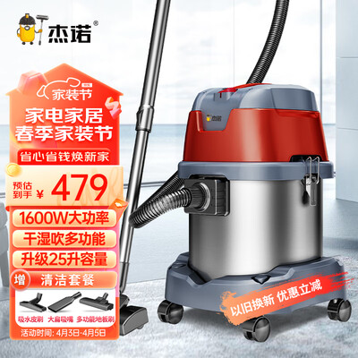 杰诺1600W大功率干湿吹三用桶式吸尘器家用商用办公室地毯装修JN603到手价格489元。