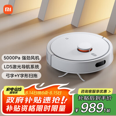 米家小米扫地机器人3C增强版智能家用大吸力吸尘器激光导航全自动扫拖一体机 擦地拖地洗地机吸尘器 目前活动价:989.1元!