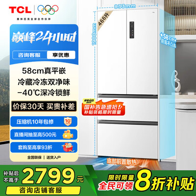 TCL650升对开门双开门超大容量白色冰箱双变频节能一级能效风冷无霜国家补贴20%家用电冰箱R650T5-S目前活动价:1919.2元!