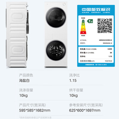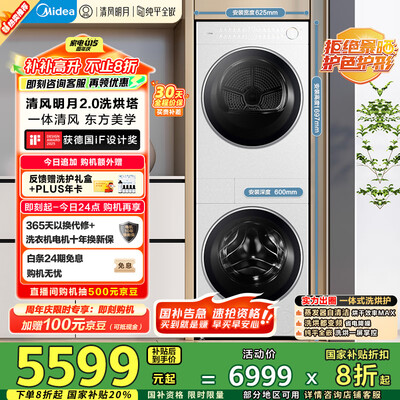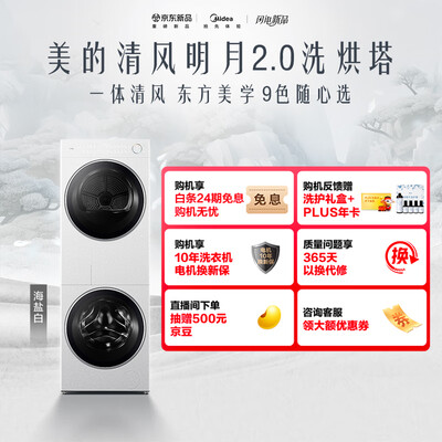 美的(Midea)洗烘套装 10KG滚筒洗衣机+变频热泵烘干机【清风明月2.0洗烘塔】MGH20A-W+AIR 纯平全嵌 国家补贴目前活动价:5439.2元!