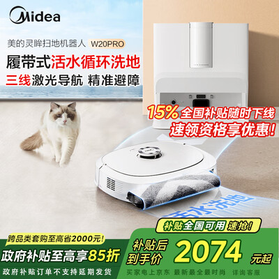 美的(Midea)扫地机器人扫拖一体自清洁 灵眸W20 Pro极地白 履带式活洗洗地机器人三线避障防缠活水洗地洗地机目前活动价:2056.15元!