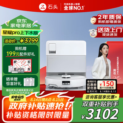 石头(roborock)扫地机器人扫拖一体星耀Pro 自动清洗 全自动上下水版 同P20Pro智能吸尘洗地机拖地【国家补贴】目前活动价:3156.9元!