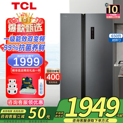 TCL650升T3超大容量超薄冰箱对开双开门一级能效双循环风冷无霜一体双变频34分贝R650T3-S晶岩灰 【650升】晶岩灰一体双变频目前活动价:1999元!