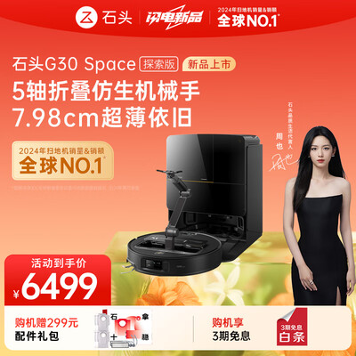 石头(roborock)扫地机器人扫拖一体 G30 Space探索版 扫拖洗烘一体机 机械臂协作 自动集尘洗地机吸尘器 A1570RR目前活动价:5456.15元!