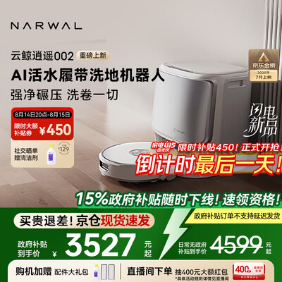 云鲸【政府补贴】扫地机器人逍遥002 AI活水履带洗地机 扫拖一体自动清洗全自动家用吸尘擦地机 水箱版目前活动价:3586.15元!