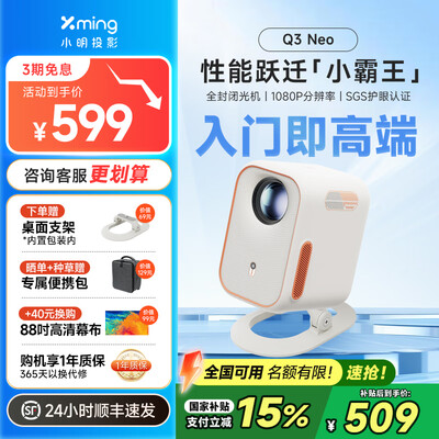小明投影仪Q3 Neo外形外观:小巧易携带投影色彩:可以的音质音效:一般投影亮度:可以操作难易:简单其他特色:懒人福音外形外观:很时尚好看投影亮度:非常好投影色彩:非常逼真 真实音质音效:非常高操作难易:简单容易 易上手作为一款千元机性价比非常高了,客服很耐心指导设置,家里窗帘还没装影响了拍摄效果。宝贝使用很方便,外形很好看,投影亮度正合适,色彩挺饱满的,操作起来也很简单,很不错开着灯也有这个效果,不错啦,不到一千的价格买到投影仪可以了,物超所值,很棒,物流速度也很快,值得推荐