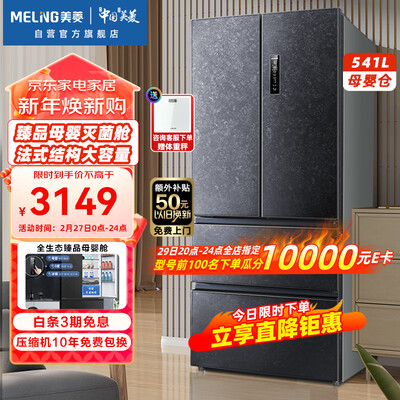 美菱(MELING)【光谱养鲜系列】541升法式多门家用电冰箱一级能效风冷无霜双变频净味母婴BCD-541WPU9CY目前活动价:1799元!