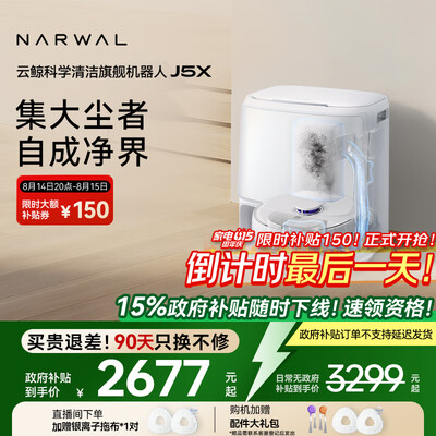 云鲸【政府补贴15%】扫地机器人J5Max 智能扫拖一体洗地机器人 扫拖一体自动清洗全自动擦地机 水箱版目前活动价:2991.15元!