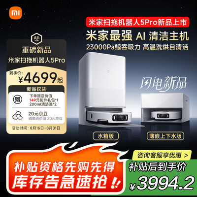 五、云鲸逍遥001 MAX和小米扫地机器人5 pro价格对比: