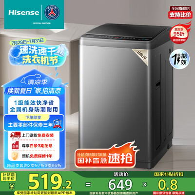 海信(Hisense)波轮洗衣机全自动 9公斤洗衣机 健康家用租房宿舍金属机身一级能效除螨HB90DC30以旧换新国家补贴首页购物车我的客服手机查看反馈提建议举报到手价格519.2元。
