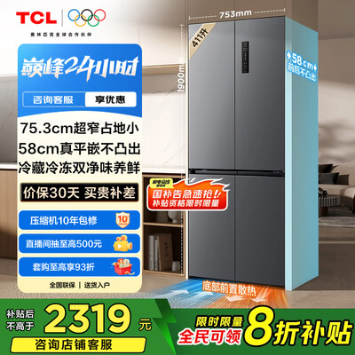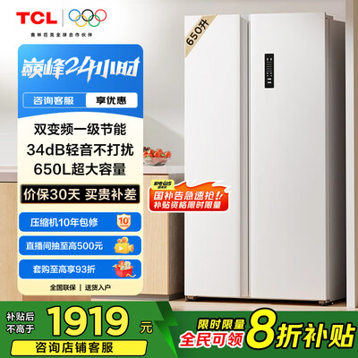 TCL650升对开门双开门超大容量白色冰箱双变频节能一级能效风冷无霜国家补贴20%家用电冰箱R650T5-S目前活动价:1919.2元!