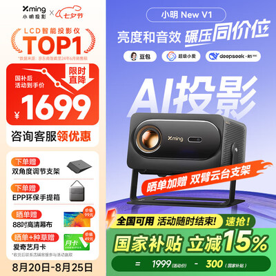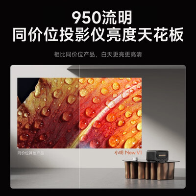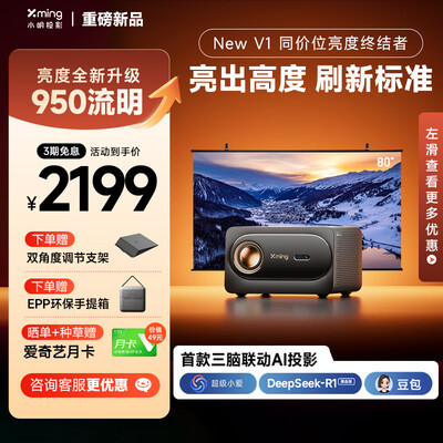 小明New V1高亮版投影仪家用1080P客厅卧室家庭影院游戏投影机AI智能语音(950流明 无感调节 接入米家)目前活动价:1665.15元!
