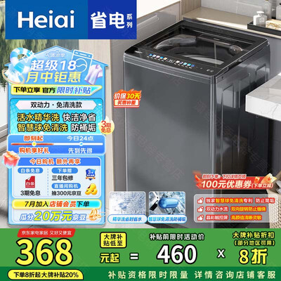 Heiai洗衣机全自动新一级能效18公斤家商两用波轮大容量 洗脱烘一体蓝光防缠绕 13KG【一级能效+蓝光风干+强劲动力】首页购物车我的客服手机查看反馈提建议举报到手价格368元。