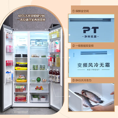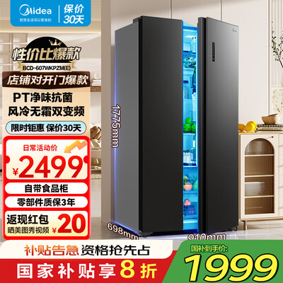 美的(Midea)607升电冰箱双对开门双开门双循环变频系统风冷无霜家用超大容量冷冻力净味一级省电节能 607升*超大容量-20格分区精储目前活动价:2699元!