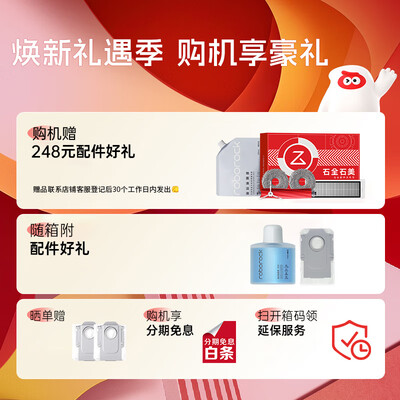 石头(roborock)扫地机器人扫拖一体P10S Pure 扫拖洗烘一体机 自动清洁智能洗地机吸尘擦地拖地国家补贴 A1220RR目前活动价:2056.15元!