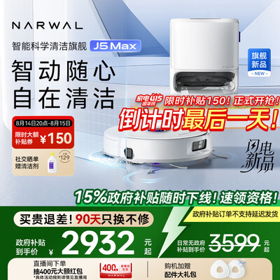 云鲸【政府补贴15%】扫地机器人J5Max 智能扫拖一体洗地机器人 扫拖一体自动清洗全自动擦地机 水箱版目前活动价:2991.15元!