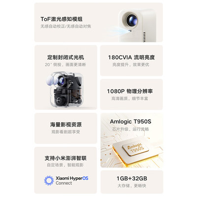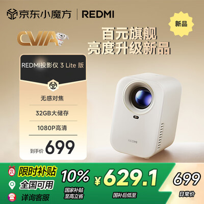 小米(MI)投影仪Redmi3 Lite版 投影仪家用 智能家庭影院 无感对焦 无感校正 1080P物理分辨率 MIUI系统目前活动价:629.1元!