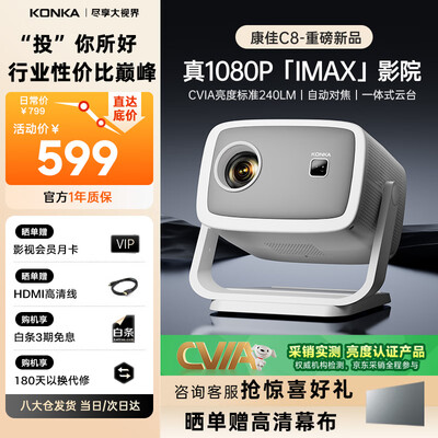 康佳(KONKA)C2pro 云台投影仪家用 高清便捷家庭影院 卧室投影机(上下自动梯形校正 高亮260lm 360度云台)目前活动价:499元!