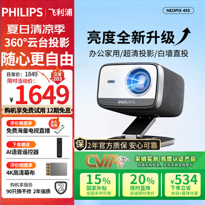 飞利浦(PHILIPS)NeoPix 145投影仪家用 智能家庭影院电视卧室手机游戏投影机(全封闭式光机 无感自动对焦 )目前活动价:499.8元!