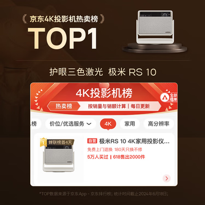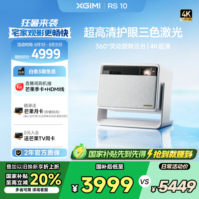 极米(XGIMI)RS 10 4K 家用投影仪 1950lm 全新一代三色激光 灵动云台 智能家庭影院 A级国标护眼 国家补贴20%目前活动价:4999元!