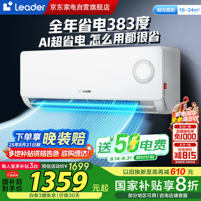 统帅(Leader)1.5匹空调挂机壁挂AI超省电新一级变频节能家用自清洁防直吹冷暖换新KFR-35GW/LPA1-1海尔出品目前活动价:1699元!