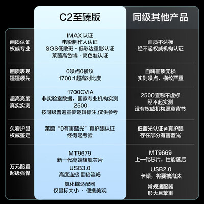 二、Vidda C2至臻版和Vidda C2 Ultra配置参数对比: