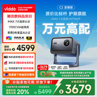 Vidda C2至臻版 海信4K超高清三色激光云台投影仪家用100吋家庭影院电视(莱茵0有害蓝光)国家补贴目前活动价:4599元!