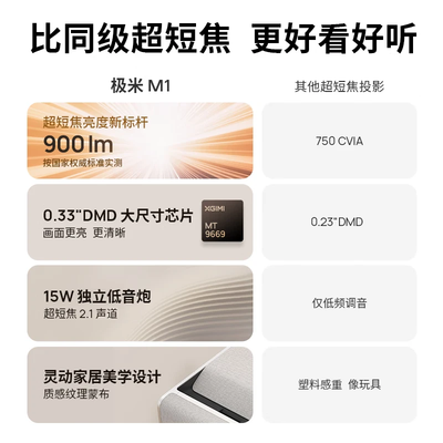 极米M1 超短焦艺术投影仪 投影仪家用(卧室推荐 100英寸大屏 音画合一 防射眼 专属2年质保)国家补贴目前活动价:3939元!