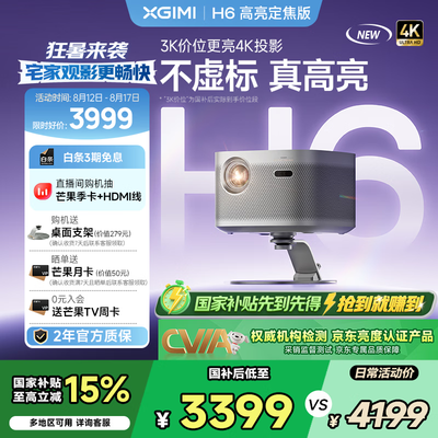 极米H6 高亮定焦版 智能家用投影仪 4K超高清 旗舰级芯片 两年官方质保 不虚标真高亮 目前活动价:3999元!