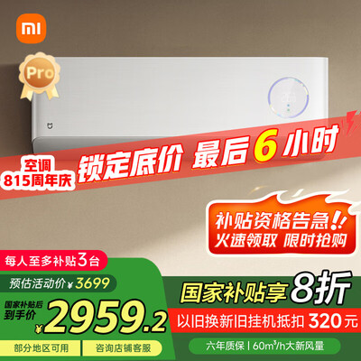 小米米家 1.5匹 超一级能效 60m3/h大新风量 新风Pro简白 空调挂机KFR-35GW/F5A1(W)【国家补贴20%】目前活动价:2719.2元!