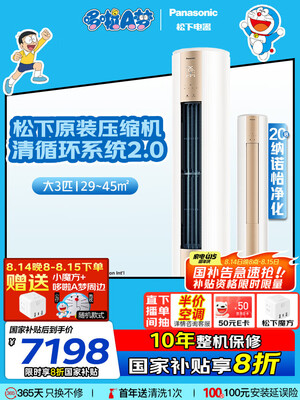 松下(Panasonic)净悦星客厅空调 3匹一级能效适用29-45㎡变频冷暖立式柜机 国家补贴 原装压缩机KFR-72LW/BpZY310N目前活动价:8998元!
