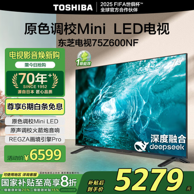 东芝电视小芝士75Z600NF PRO 75英寸 音画双芯Mini LED 火箭炮音响 144Hz 4K 以旧换新家电国家补贴目前活动价:5679.2元!