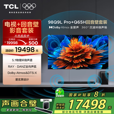 TCL音响版本-98Q9L Pro 98英寸 QD-Mini LED电视 Q9L Pro+高端家庭影院回音壁 Q65H目前活动价:17498元!
