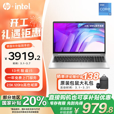 惠普(HP)【国家补贴20%】战66六代酷睿15.6英寸轻薄笔记本电脑(英特尔13代i5 32G 1T 2.5K高色域120Hz)到手价格4899元。