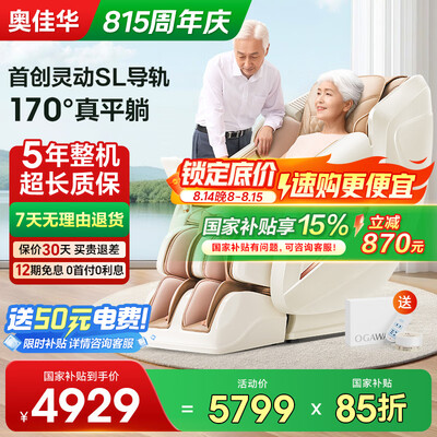 奥佳华按摩椅十大品牌家用太空舱颈椎肩颈全身零重力智能摇摇椅国家补贴七夕情人节礼物7508pro浅香云杏目前活动价:5499元!
