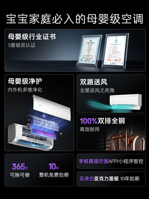 空调质量很好,物流非常快,安装效率高,两台空调加两台外机挂装个小时安装完毕,收费按平台规定收取。非常满意!犹豫了好久,还是选择了,品牌好,售后好,并且外观大气,性价比高,想要的功能全都有还是匹机器,喜欢节能效果:空调收到了,装起好了,外观很好看,静音效果特别好。空调包装完好,就是我买的是,收到的货是,希望把广告写清楚点!这款空调外观简洁美观,冷的速度快,静音效果好,物流快,第二天就送到了,安装师傅安装熟练态度也很好。
