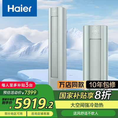 海尔空调 京馨 3匹 一级能效 柜机 客厅空调 KFR-72LW/A5EAA81U1(芊晶灰) 以旧换新 智能操控 国家补贴目前活动价:7399元!