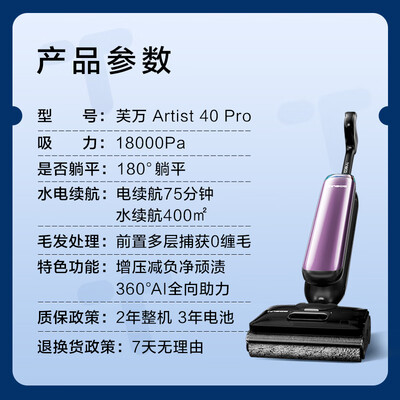 添可芙万Artist40Pro哪个好?区别是?添可芙万Artist40Pro用着还是不错的,没有噪音,使用的时候有一个向前的力,不会太重,总体来说还可以。洗地机收到了,效果非常好,洗的很干净,非常省心,比手动省事多了,还不费电,老婆很喜欢迫不及待的想赶紧使用一下 物流很快头天拍第二天就倒充电每次要手动查插头,电源没有接在底座上,很不方便洗地机收到了,物流很快,包装完好,操作简单,好收拾,地很干净,声音不大,性价比很高