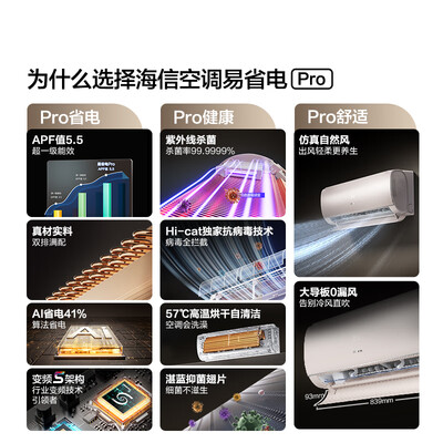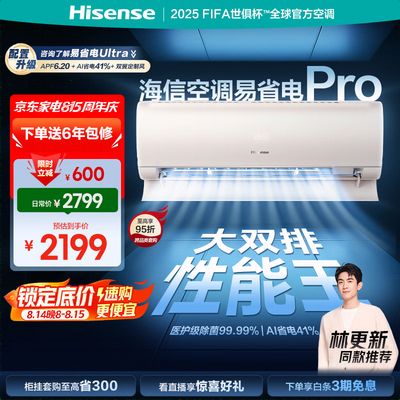 海信(Hisense)空调 易省电Pro 大1.5匹 AI省电 大双排 仿真自然风 新一级 国家补贴20%挂机KFR-35GW/E370Pro-X1A目前活动价:2049元!