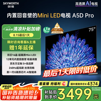 创维电视黑骑士A5F Pro 75英寸QD-Mini LED 超越oled液晶游戏平板智能4k电视机 国家补贴 a5dpro+目前活动价:4959.2元!