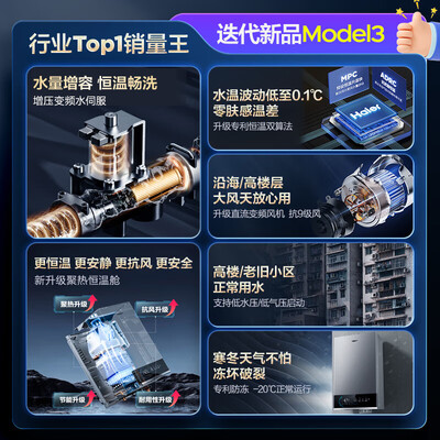 海尔MODEL3和海尔小海鲸KL5MAX哪个好?有什么区别?两款海尔MODEL3和海尔小海鲸KL5MAX差别不大的哈,经过比较后我订是海尔MODEL3,这个海尔MODEL3还是比较不错的,相当大气上档次的,说真心的这个海尔(Haier)【MODEL3】13升燃气热水器天然气 增压变频水伺服【国家补贴15%】 ECO节能 低水压启动 以旧换新确实是非常OK的,做工还真挺细腻的,我自己也是才购买不久的,热水器非常好用,再也不用放出好多冷水了,声音也很小,一直暖暖的,洗澡再不怕水突然变凉了。这个寒冬太幸福了! 海尔MODEL3热水器安装上了,外观很时尚,这款是零冷水,应该很好用的。款式和家里装修风格非常搭配 高大上!新房还没入住呢,等开天然气了再去试,颜值高!喜欢?安装师傅很有耐心! 终于把旧的换了,这个热水器太给力了!还能看到气量和水量,还可以设置私人订制!给力! 送货上门,安装免费,电话回访,使用价值高,物美价廉,很不错? 这款产品非常好,交货变,外形时尚,尤其是安装师傅安装非常到位!