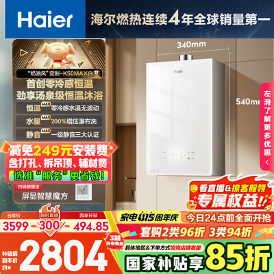 海尔(Haier)【MODEL3】13升燃气热水器天然气 增压变频水伺服【国家补贴15%】 ECO节能 低水压启动 以旧换新目前活动价:747.32元!