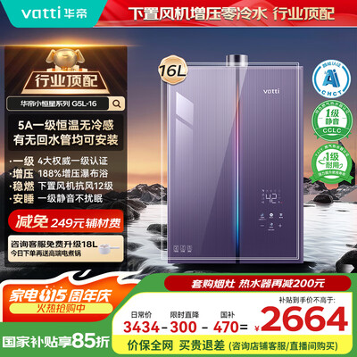 华帝(VATTI)【无冷感G5L】16升燃气热水器天然气【国家补贴15%】下置风机一级节能静音小恒星零冷水i12571B-16目前活动价:2464.15元!
