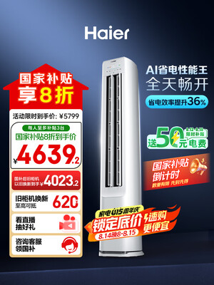 海尔(Haier)小红花套系 净省电3匹客厅立式柜机 防直吹节能空调KFR-72LW/E1-1 国家补贴20% 以旧换新目前活动价:4638.4元!