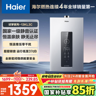 海尔(Haier)【小海鲸KL5MAX零冷感】16升燃气热水器天然气 7A一级恒温 TSI增压大水量小体积【国家补贴15%】目前活动价:2804.15元!