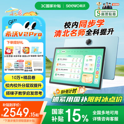希沃AI学习机V2 Pro高思版 儿童护眼学习平板 电脑小学到高中 学练机早教机 教学一体机6G+256G极光蓝目前活动价:2549.15元!