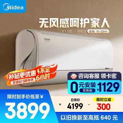美的大1.5匹风语者无风感 新一级能效变频壁挂式智能空调 家电国家补贴20%KFR-35GW/BDN8Y-FA200(1)A目前活动价:3899元!