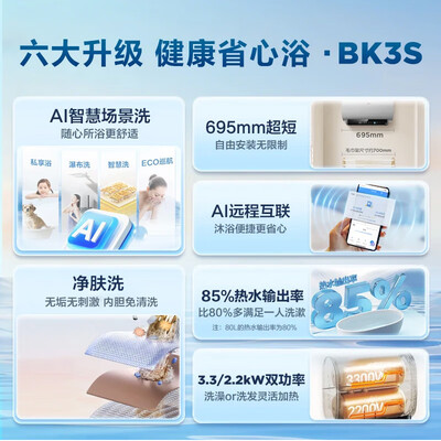 海尔BK3s和海尔PD7哪个好?有区别吗?说真心话这二个海尔BK3s和海尔PD7区别不是很大的哈,款式是差不多的,只是说外观不一样,看个人需要吧,我自己用的是海尔BK3s,款式是我喜欢的,多时尚的,整体看着大气,质感不错的,然后这款海尔BK3s做工非常考究,说真心的这海尔(Haier)【咨询客服领国补】电热水器BK3扁平式家用扁桶一级能效节能双胆3300W速热镁免WIFI智控小魔盒系列 60L 3300W 小魔盒净肤洗BK3S个人使用过一段时间后感觉不错的 哟,便宜,放在租房子的地方,平常就俩人,够用了!京东物流很快,第二天就送到了,然后就有人打电话,联系安装问题!第三天下午师傅来安装,有个半小时就好了! 海尔BK3s物流很快,第二天就送到家了,安装也很及时,热水器容量大,安在出租房内用刚刚好,水加热很快,物美价廉。 买回来过了些天才拿出来安的,热水器颜色正合我意,地方小放着正好,安装师傅人挺好,很满意。 挺好的,价格实惠,物流也很快,很满意的一次购物。师傅上门安装的,需要自己准备一些东西,还没有用,京东物流很快,满意,赞?赞赞赞! 热水器收到了,非常棒热的很快,物流给力,装修师傅也很细心,非常满意 热水器很便宜,但是很好用,着急用自己安装的外形外观:好看加热速度:快耗能情况:低