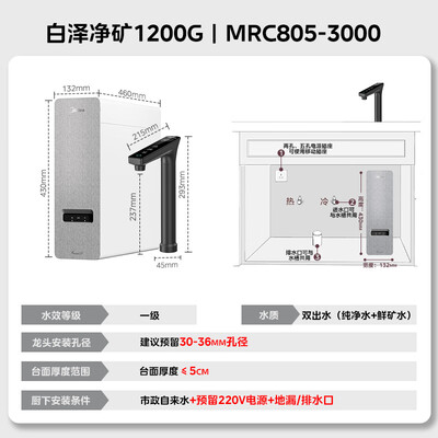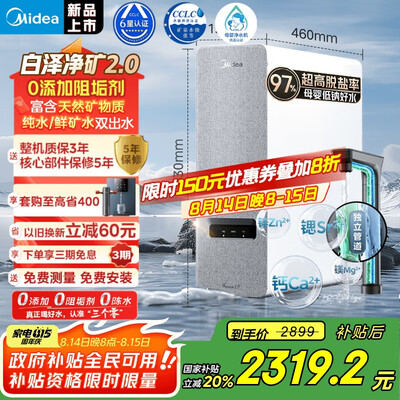 美的(Midea)国家补贴家用0阻垢剂白泽2.0净矿净水器直饮1200G 6年RO反渗透过滤器 矿物质厨下双出水净水机 目前活动价:2319.2元!
